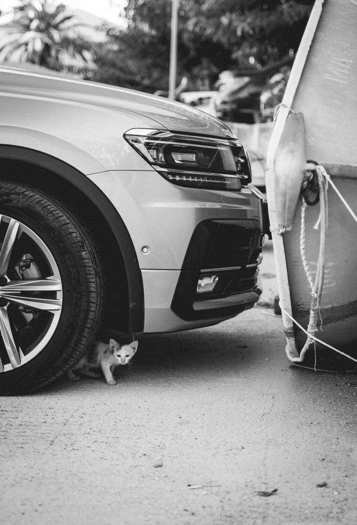My neighbor to the north of me has a kitten. You’ll never guess where it likes to hide.