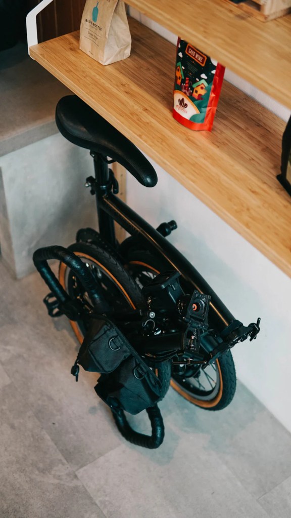 A foldable bike is exactly what it sounds like: a bike that folds. It’s the Transformer of the biking world. It folds up and turns into a…robot?…no, just a bike that fits into smaller spaces, such as the trunk of a car, or a closet.
